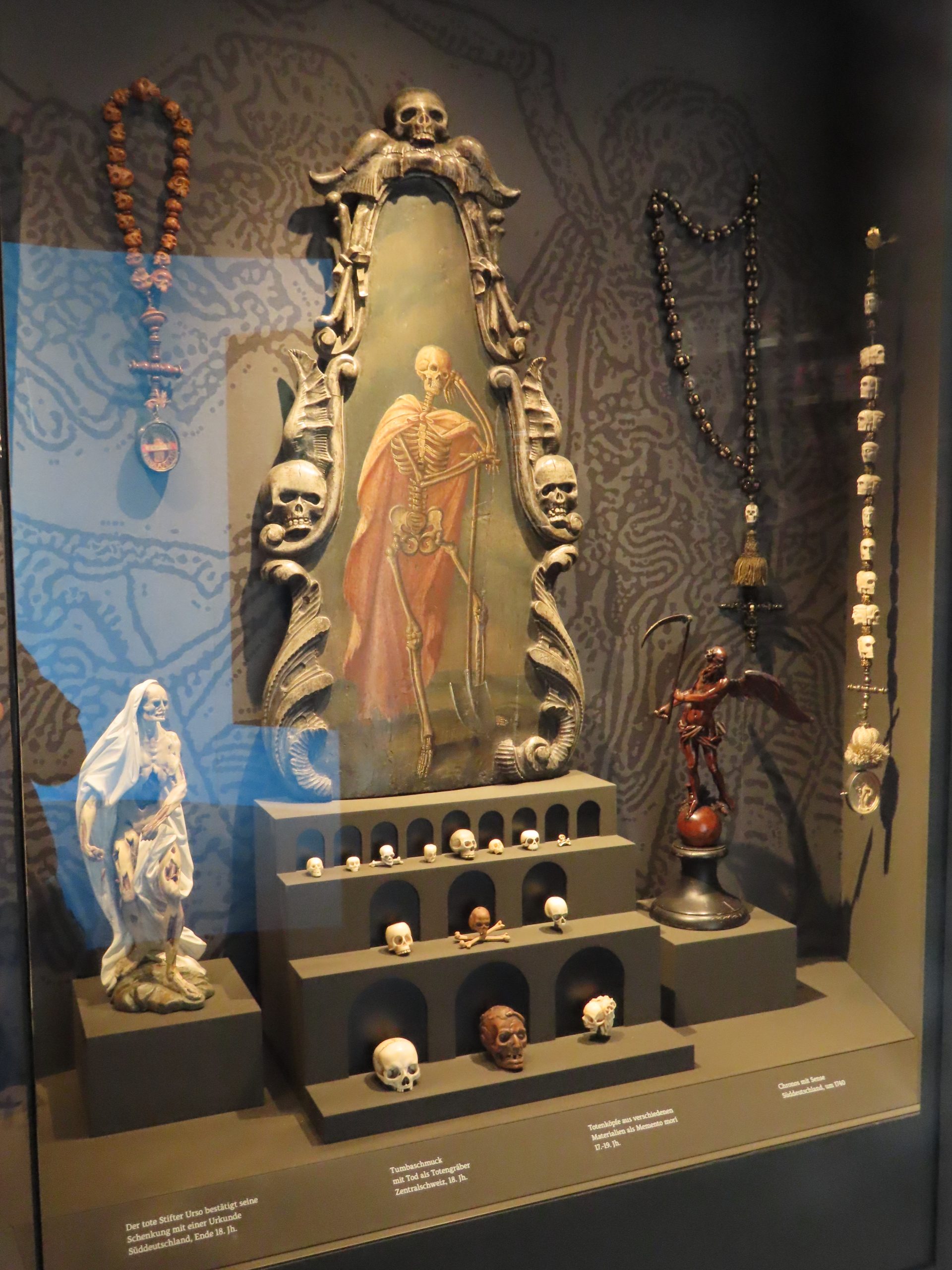 Memento Mori, Freising 21. April 202521. April 2025 dk6la Ebenfalls im Diözesanmuseum anzutreffen: ein kleines Paradies auf wenigen Quadratmetern, eine Art Rotunde mit Schädeln, Skeletten, Schädeln, Totentänzen, Schädeln; mit Musik hintermalt. Allein schon deswegen hätte der Besuch gelohnt.