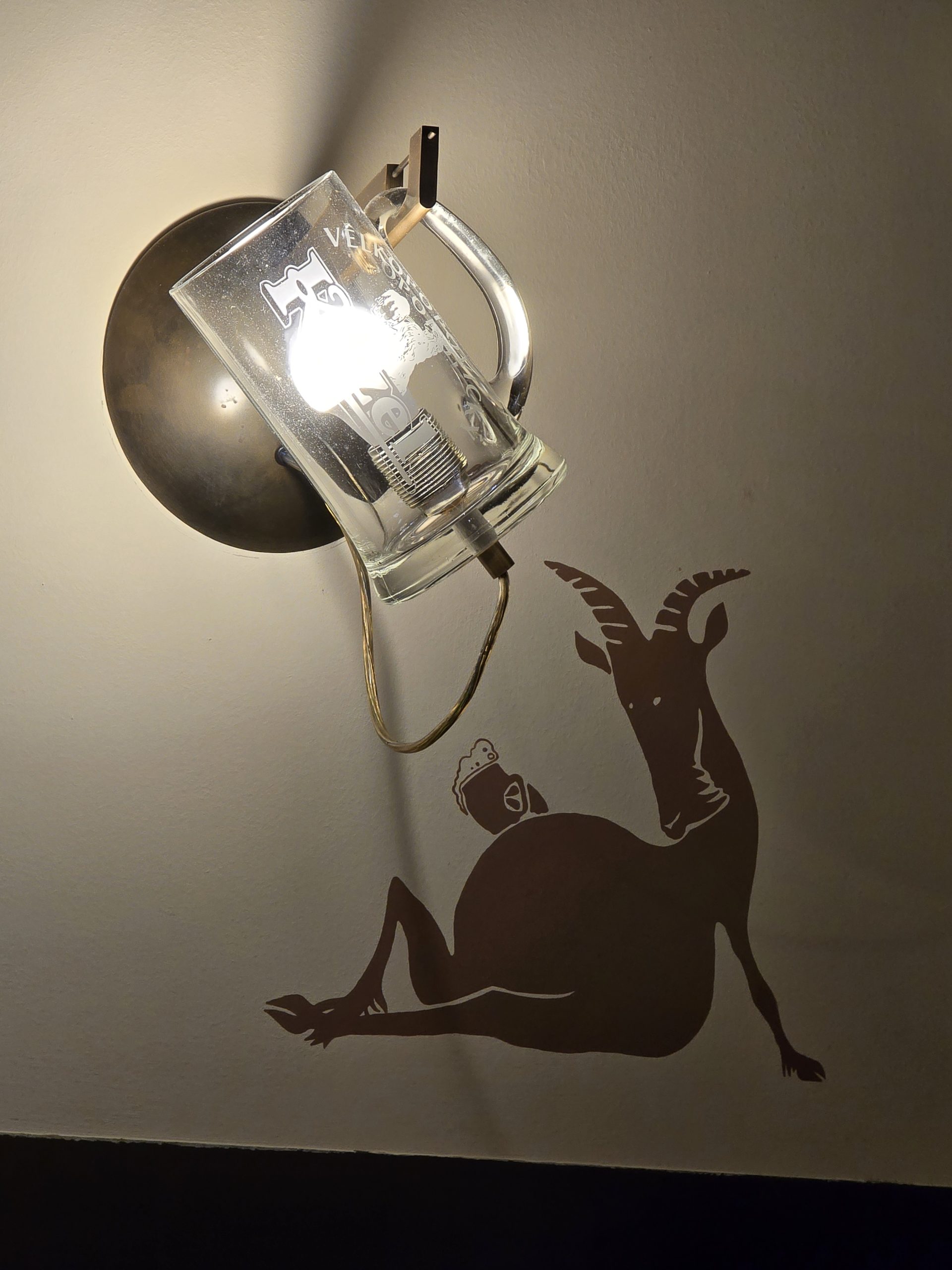 Unweit davon gehen wir auf ein Mittagsbier in die Gaststätte „Ziegenstall“ – der Namen ist Programm!