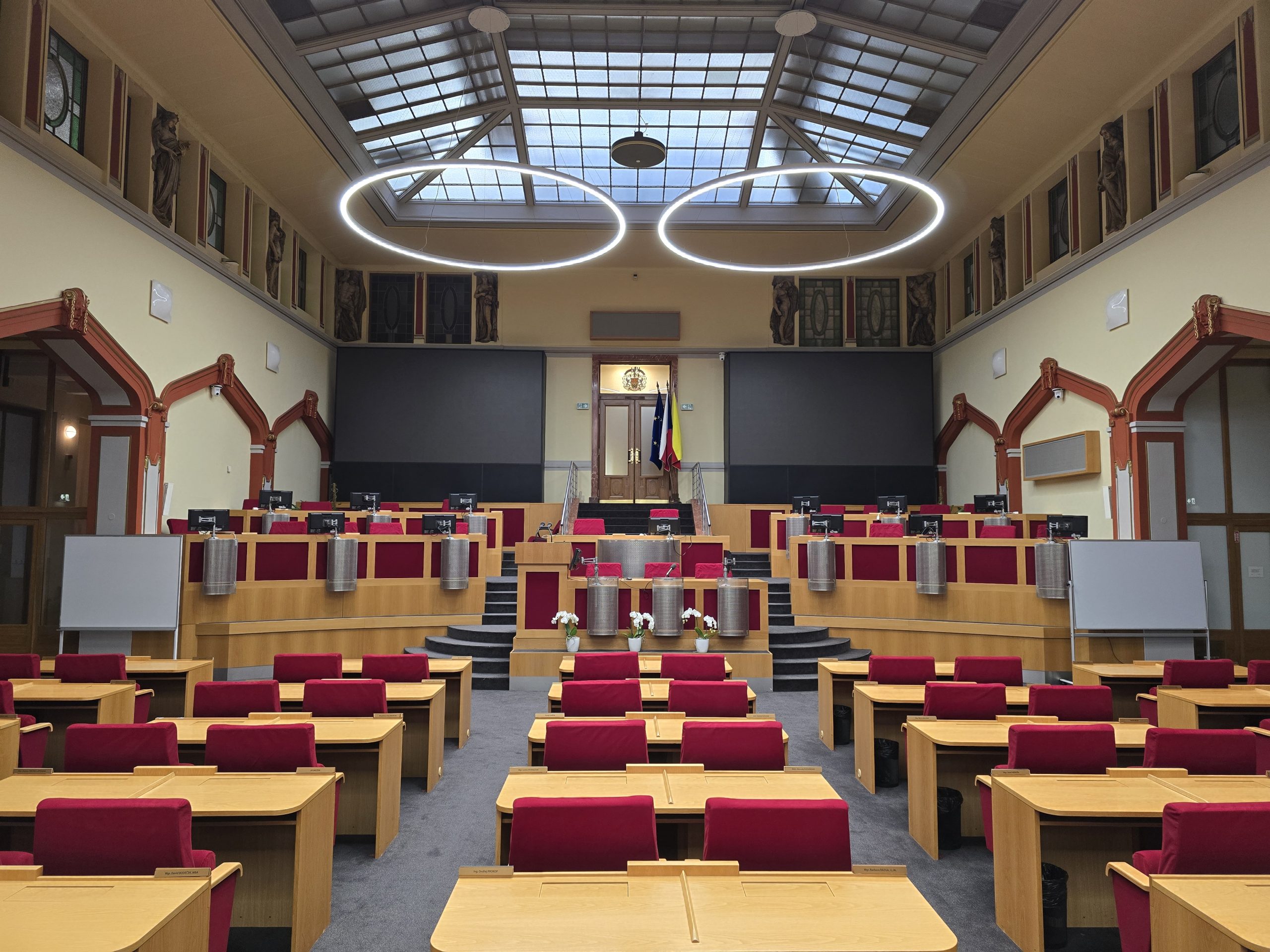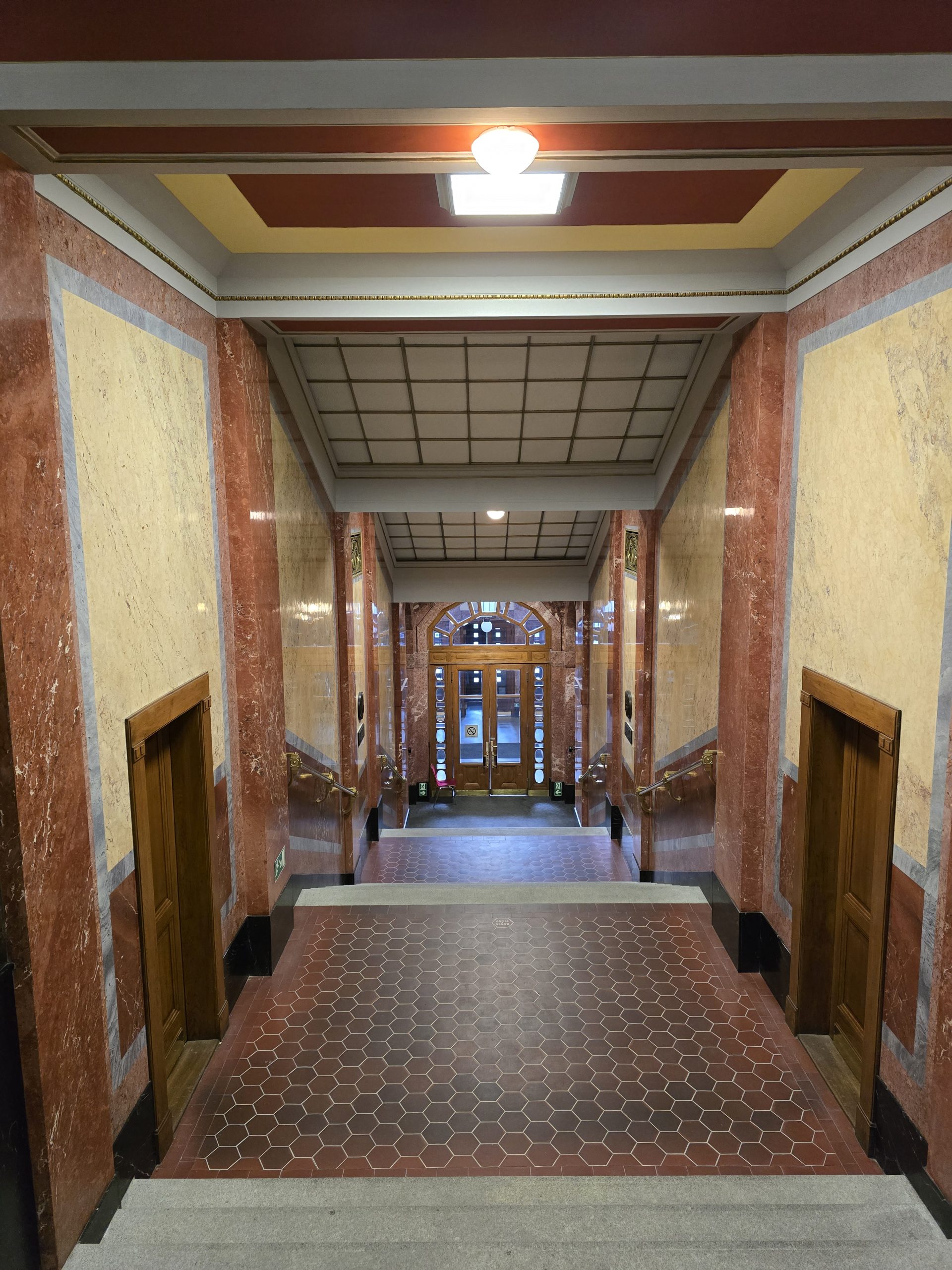 Weiter geht es mit einer Führung in einem der Prager Rathäuser. Nackte Mädchen gehen immer, und in dem herrlichen Rathaus schauen wir uns neben dem Sitzungssaal als Hauptattraktion den Paternoster an und drehen darin auch eine Runde.