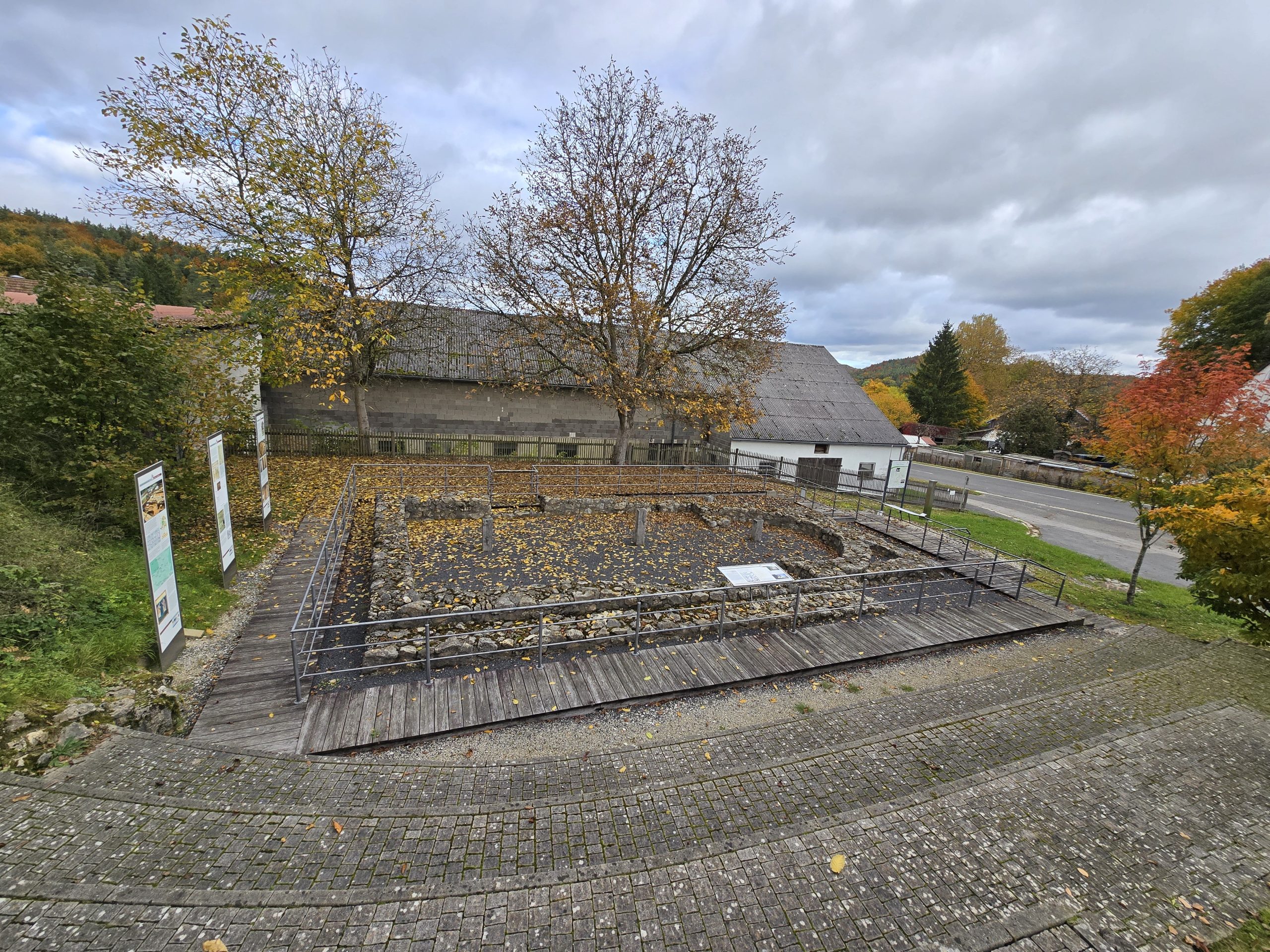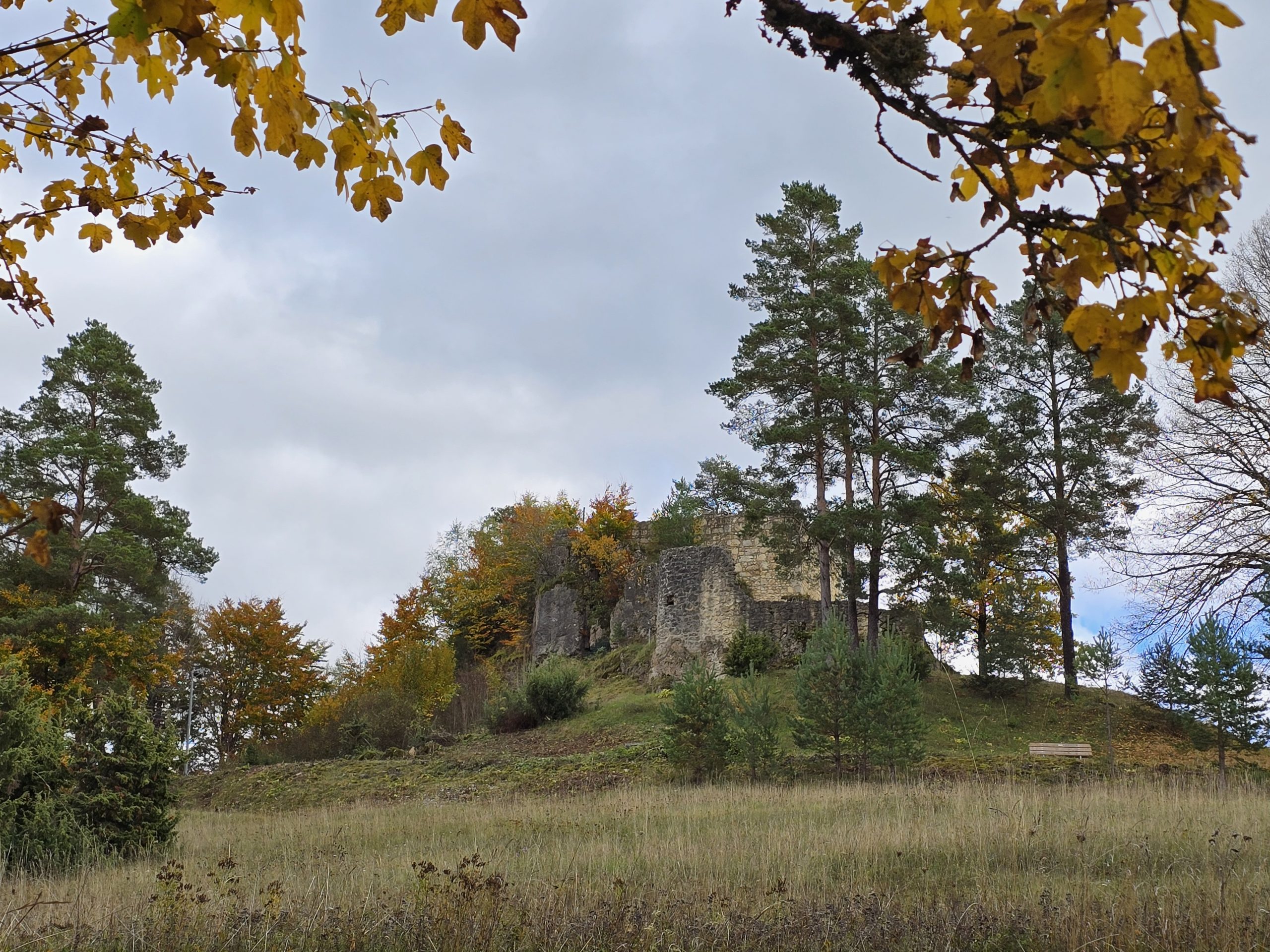 So wandern wir also los, mitten durchs Nirgendwo, viel Herbstidyll, und als erste Besonderheit die Grundmauern einer uralten Kapelle, die leider 1979 abgerissen wurde, anstatt sie zu erhalten.