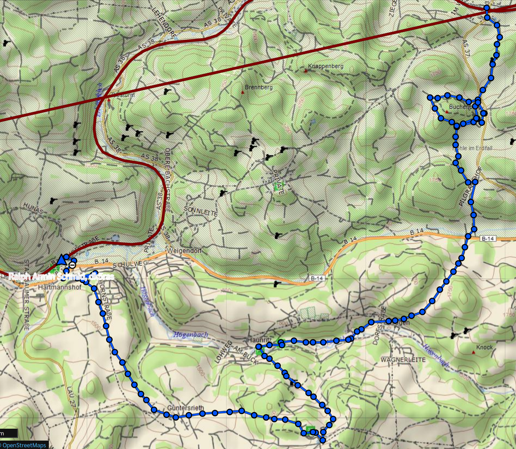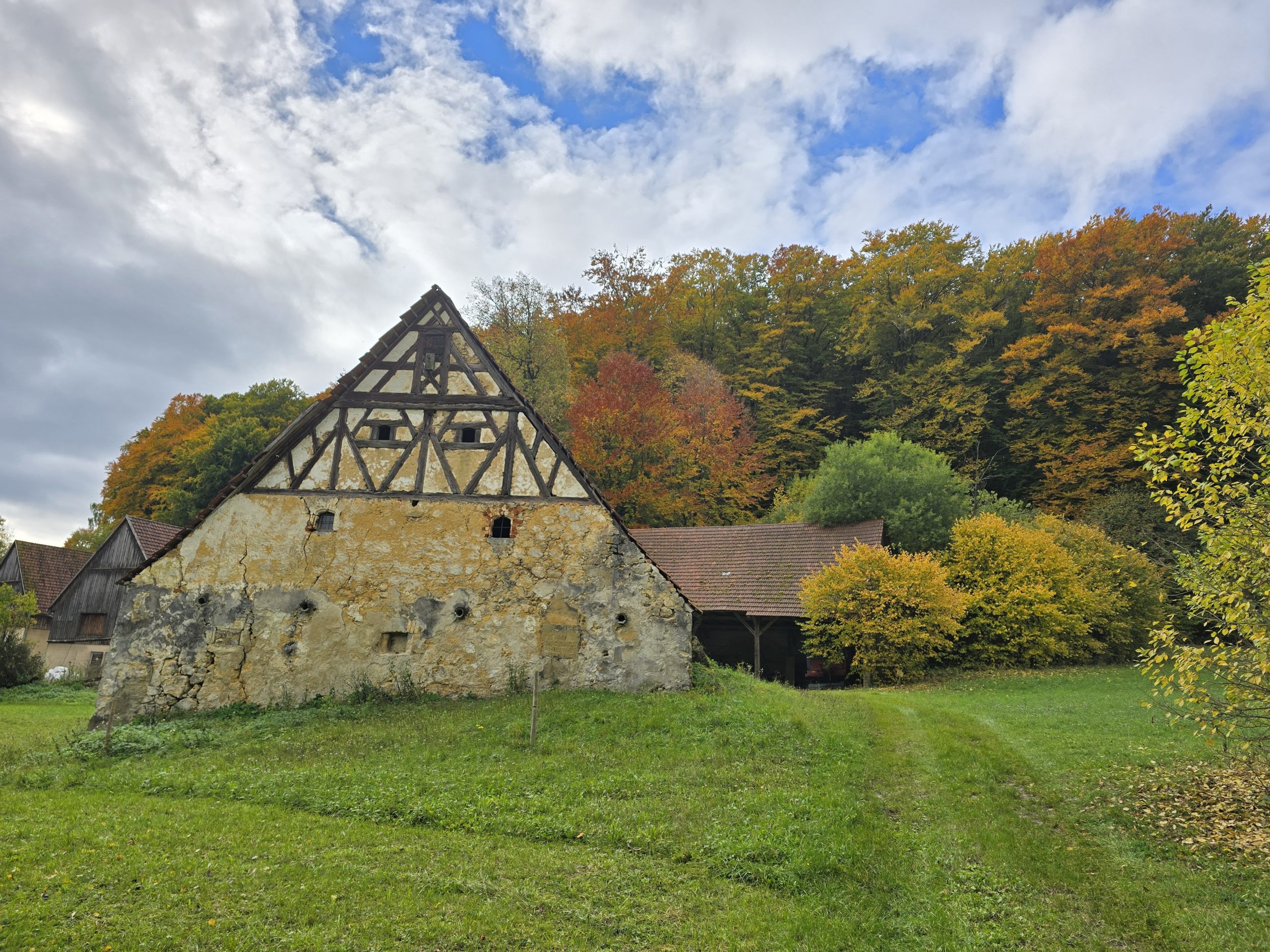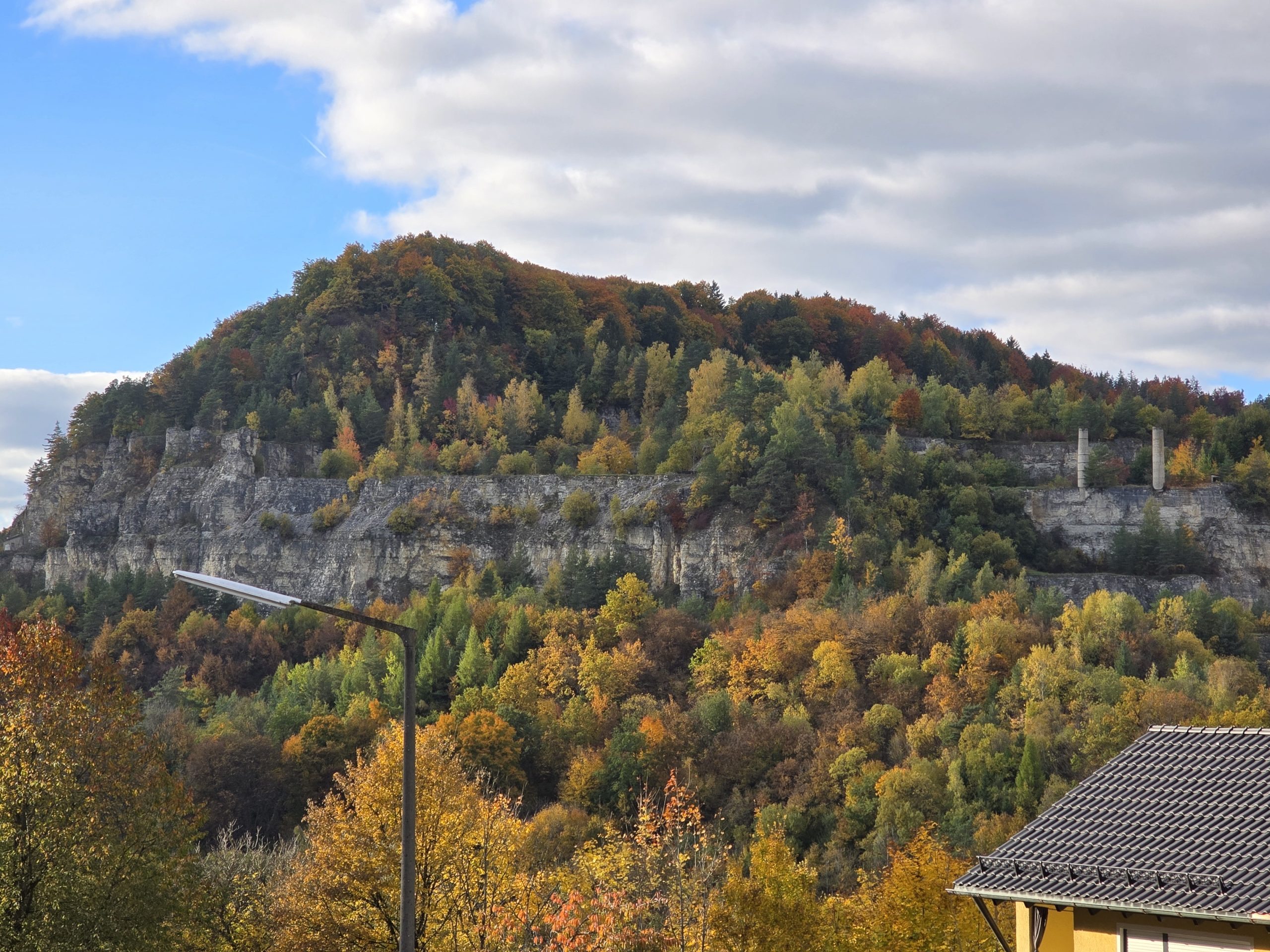 Ziel ist Hartmannshof. Es geht nur noch abwärts, was es leicht macht, das letzte Stück zurückzulegen. Dabei bewundern wir noch den Steinbruch mit seinem alten und neuen Teil – zu erahnen war der schon von der Ruine aus!