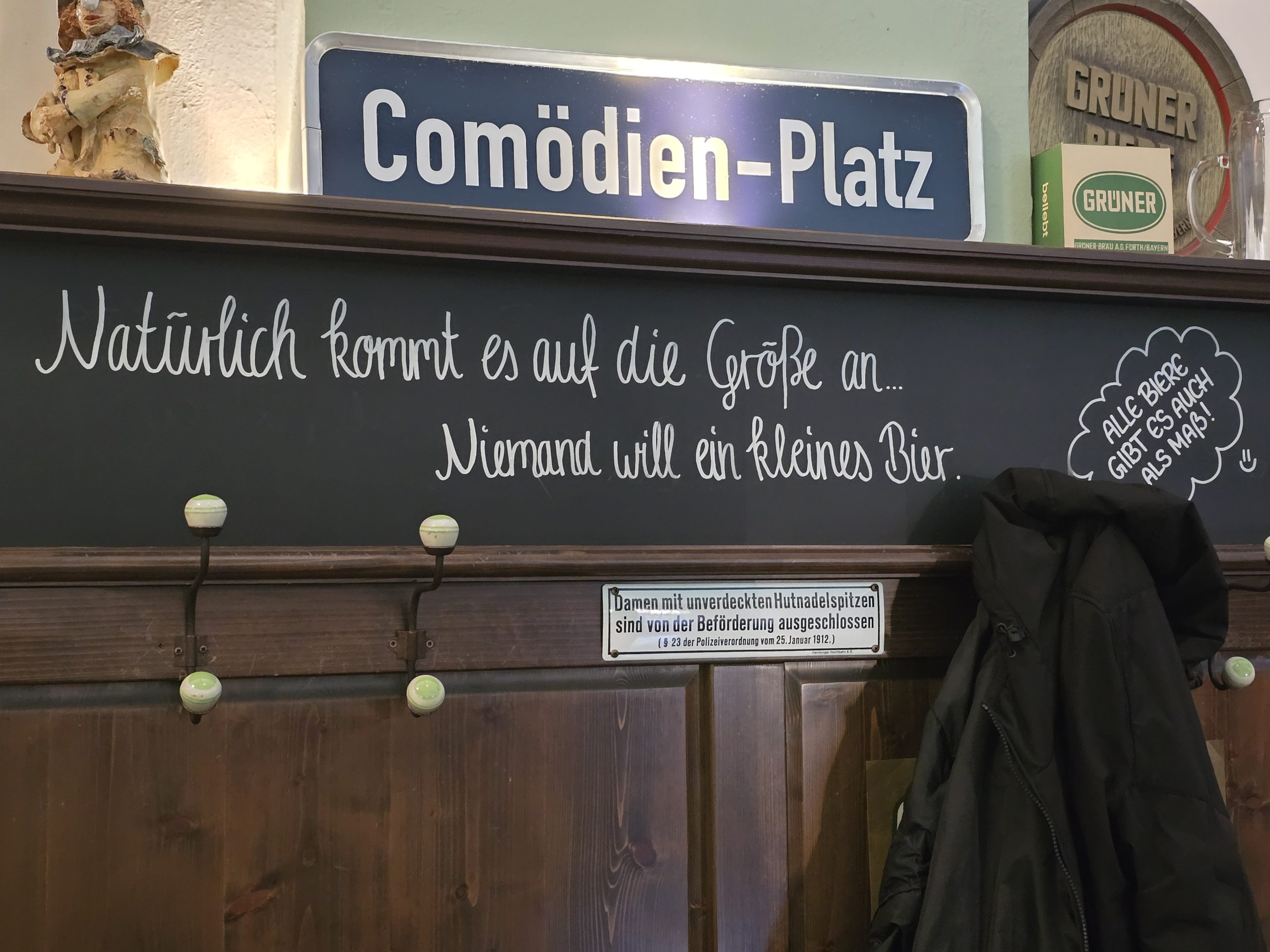 In einem kleinen Örtchen bewundern wir den Alten Fritz, vor wir eine Einkehr auf ein Bier im Gasthof haben. Es ist so mild, daß wir ganz entspannt draußen sitzen können.