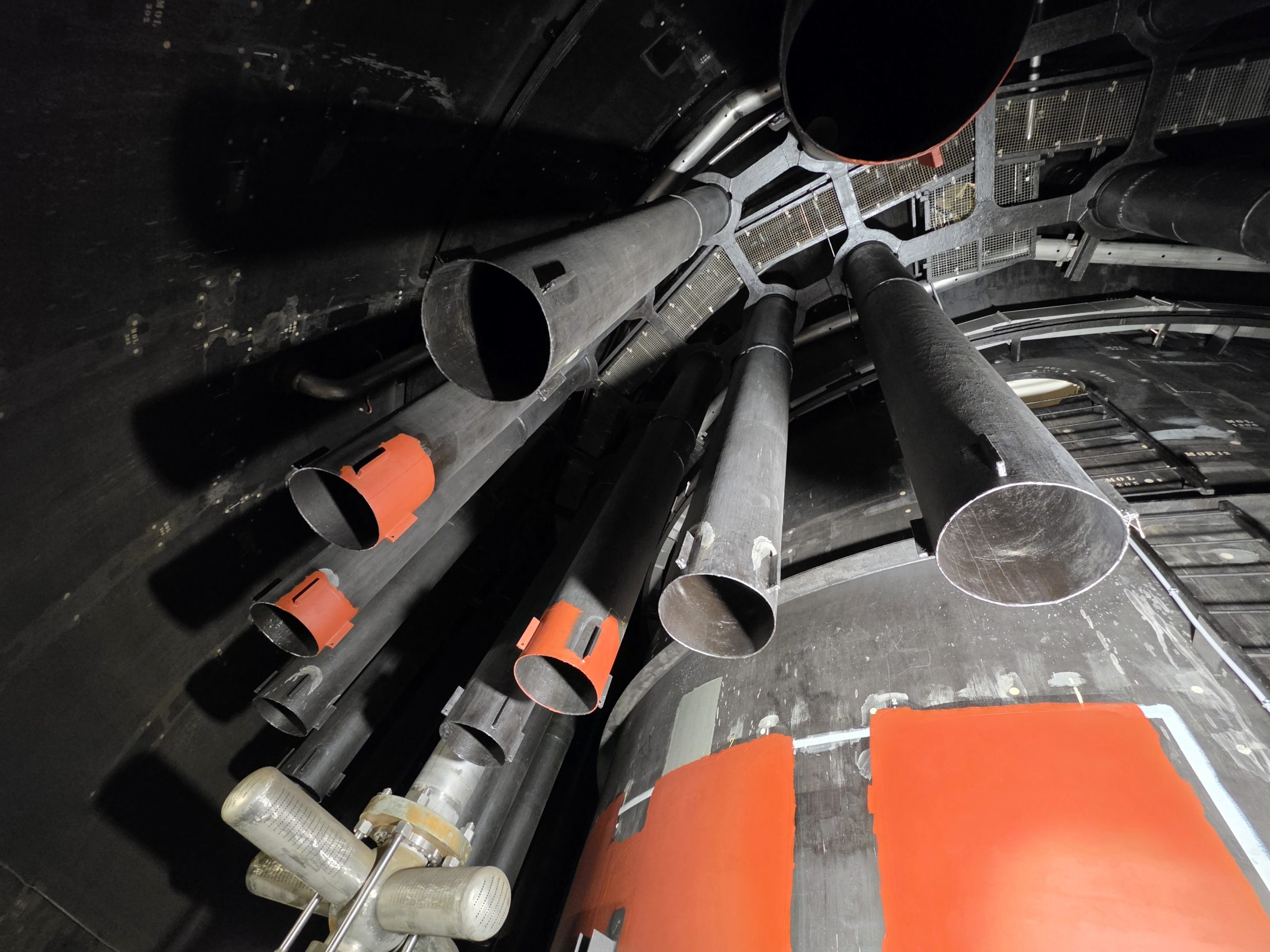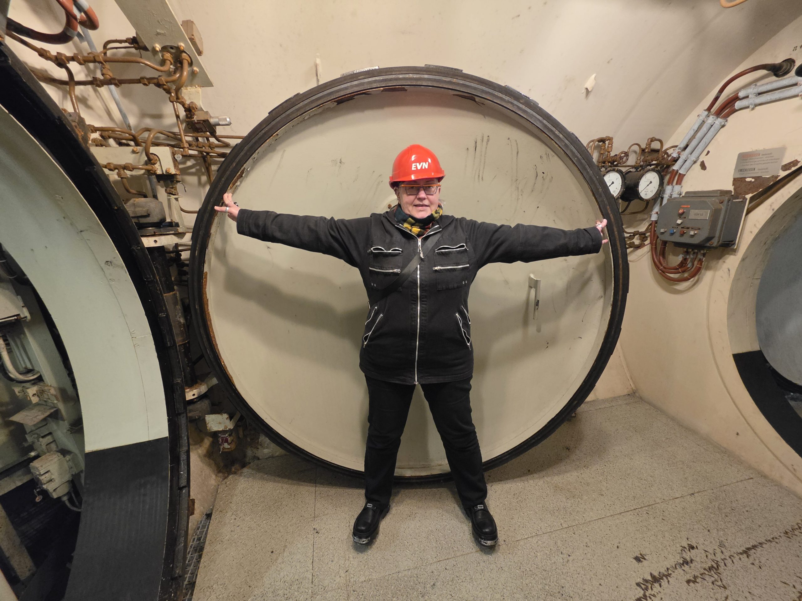 Danach geht es in den Sicherheitsbehälter, in den Bereich zwischen Reaktor und Außenwelt. Dieser Raum wäre im Betrieb unter Wasser gestanden. Durch eine beeindruckende Luke geht es in den Bereich unter dem Reaktor, in welchem die Technik zum Bewegen der Steuerstäbe installiert ist.