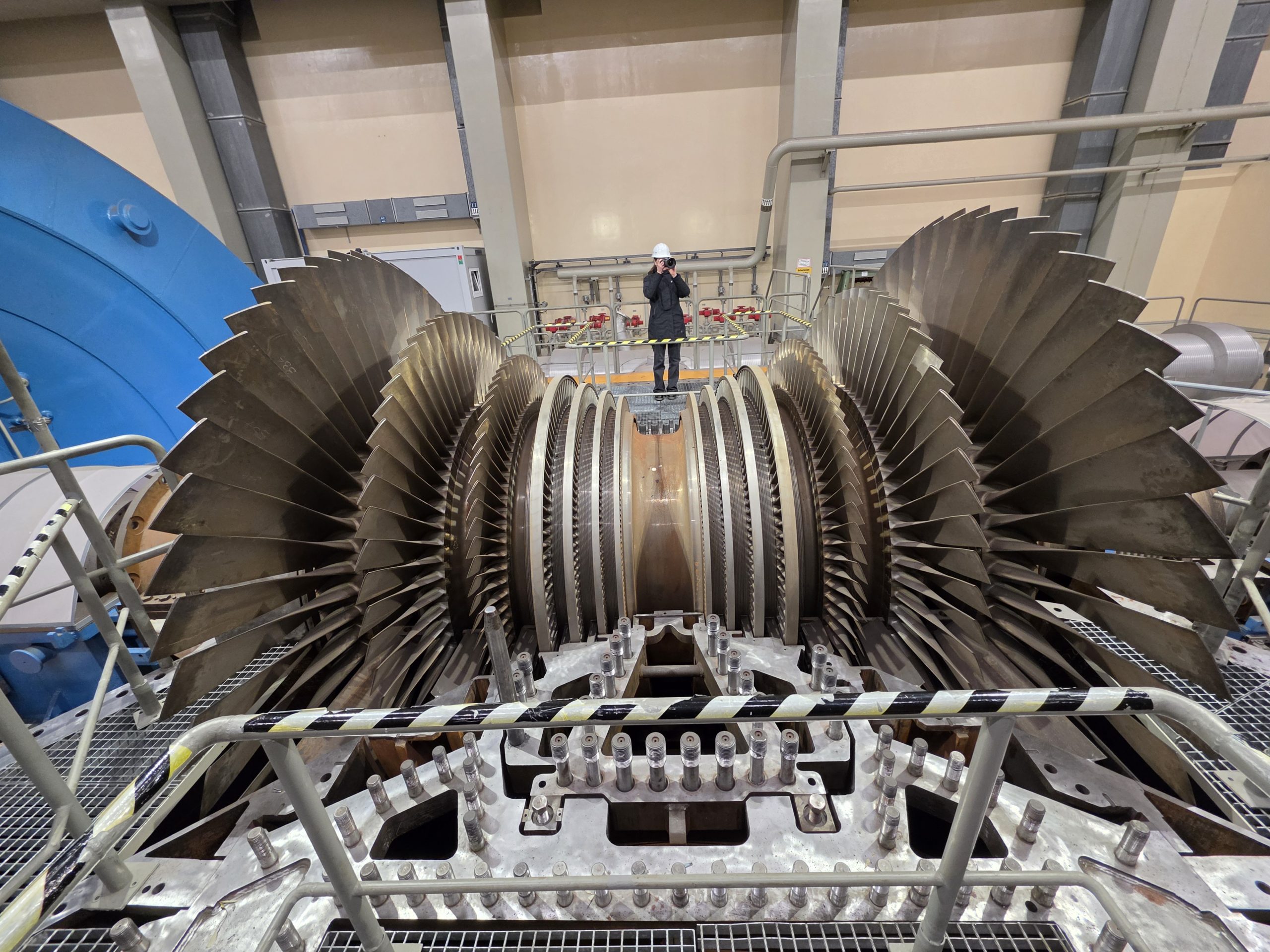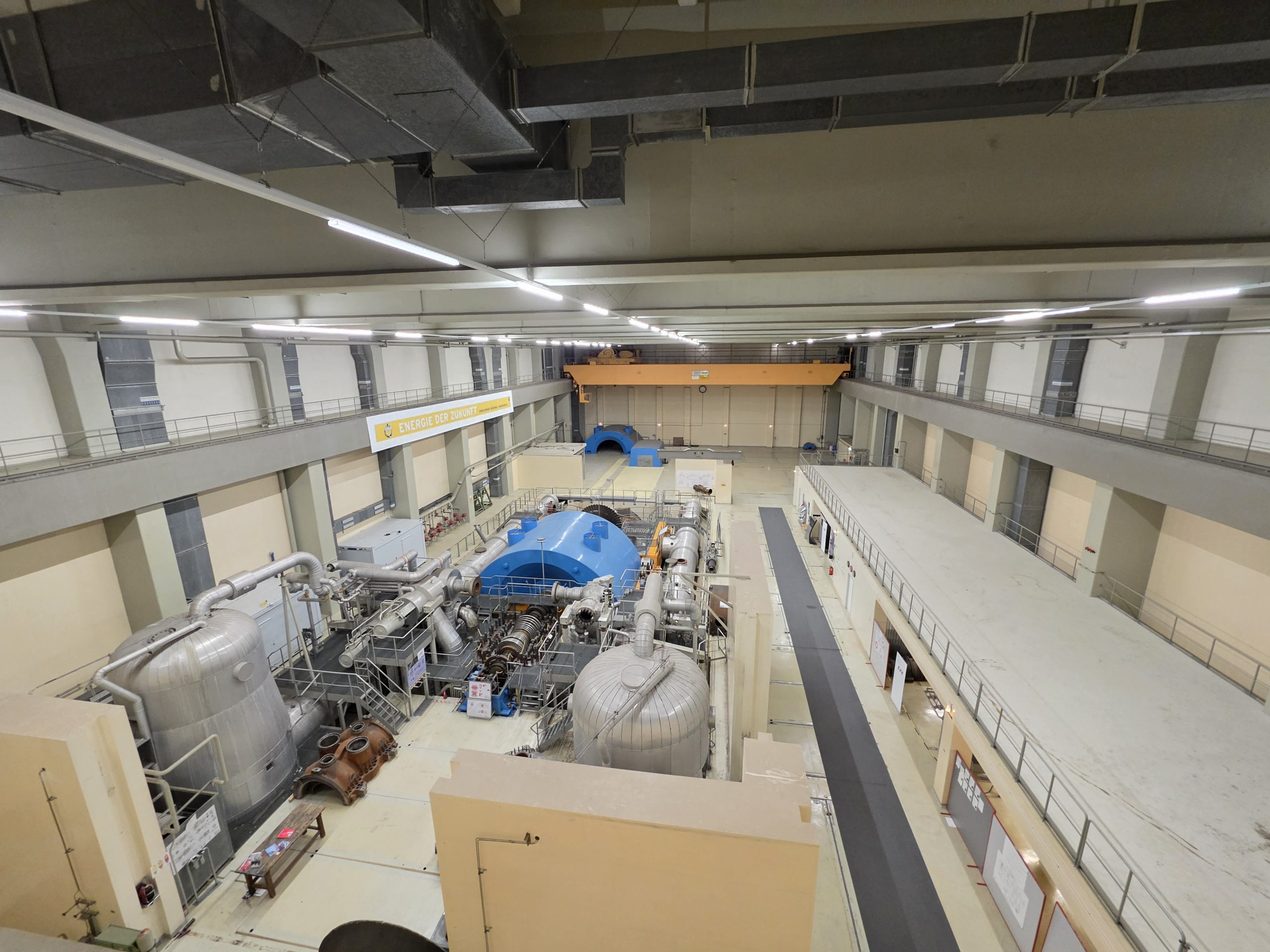 Im Maschinenhaus sind die Turbinen und der Generator untergebracht. Auch dieser Bereich wäre im Betrieb radioaktiv belastet gewesen, da ohne Wärmetauscher der Dampf direkt aus dem Reaktor die Turbinen bewegt hätte.