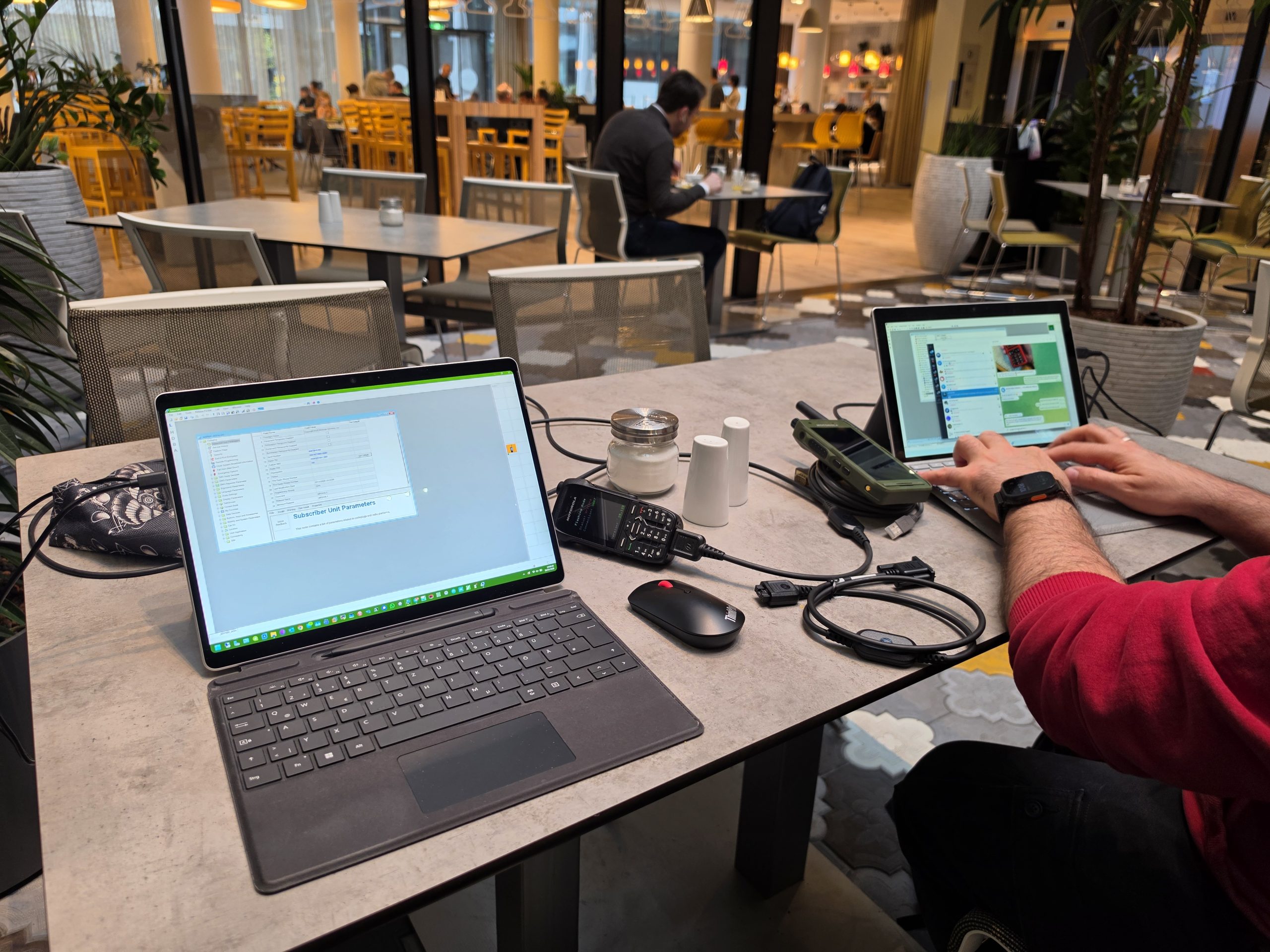 Auch heute wieder Frühstück im Bahnhof, danach zieht Manu mit Patrick los und erledigt ein paar Einkäufe, und ich setze mich mit Robert ins Hotel, um ein wenig Technik zu betüddeln und zu reparieren. Dabei werden wir etwas seltsam beäugt, aber das sind wir ja gewohnt.